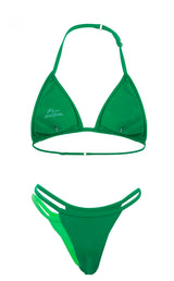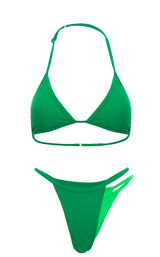 Triangle shapes, no tie sides and the most illusive effect we've seen is what our 'Double Trouble' set is all about. Is that two bikini's or one? Keep em wondering! Made from matte stretch fabric to keep you snatched in all the right places.