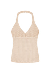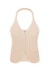 Make a statement with LANA - a hand crocheted, two piece set in a soft cream. The high-quality, pull-on halter neck vest is effortlessly paired with knit shorts for a versatile look.